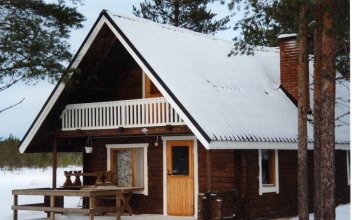 Kaksi ympärivuotiseen käyttöön soveltuvaa hirsimökkiä neljälle ja kuudelle henkilölle.
